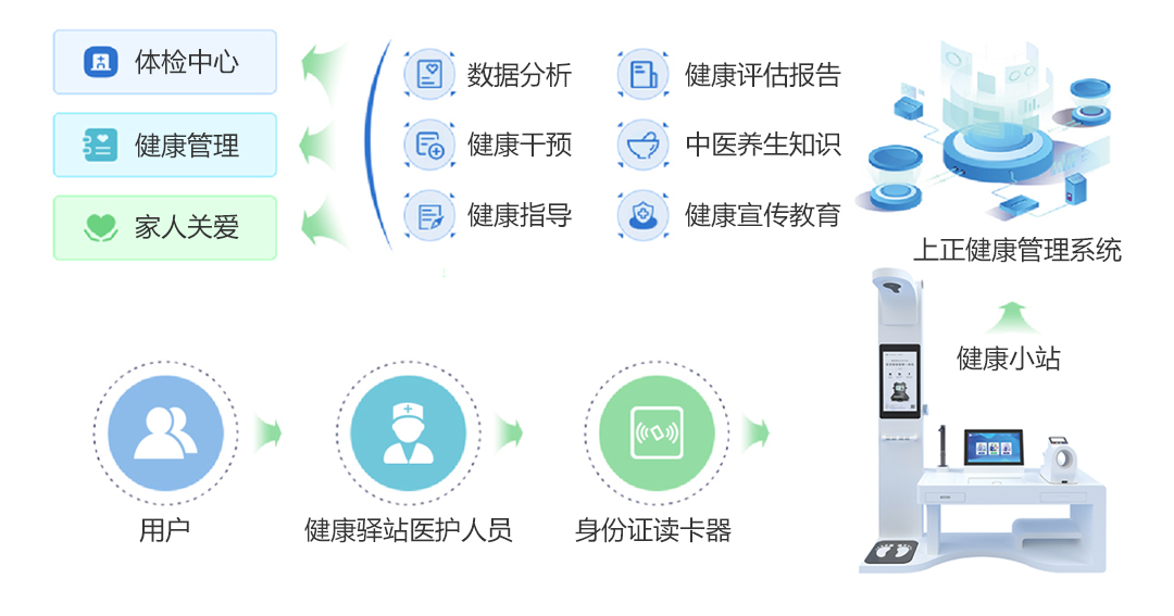 上正華瑞健康驛站智能體檢一體機(jī)適用于社區(qū)養(yǎng)老服務(wù)中心、養(yǎng)生會所VIP、會議營銷、社區(qū)、銀行VIP、保險公司VIP、電信移動聯(lián)通VIP及大企業(yè)為自己員工建立的健康檔案等